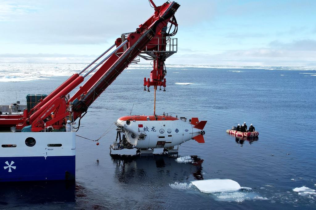 “蛟龙”号在北极冰区进行下潜。
